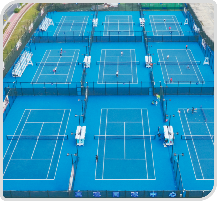 丙烯酸球场(弹性/硬地)、硅PU球场、混合型塑胶跑道、复合型塑胶跑道、全塑型自结纹跑道、足球场人造草坪